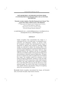| Uncontrolled Keywords: | Gender recognition, unconstrained face images, soft biometric traits, local feature descriptor, shape feature extraction |