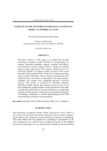 Islam, Abu Yousuf Mohammed Atiquil and UNSPECIFIED (2011) Viability Of the Extended Technology Acceptance Model: An Empirical Study. Journal of Information and Communication Technology, 10. pp. 85-98. ISSN 2180-3862