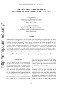 Aiswarya, B. and Ramasundaram, G. (2013) Indian Women in Technology: An Empirical Analysis of Role Conflict. Malaysian Management Journal (MMJ), 17. pp. 13-26. ISSN 0128-6226