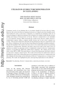 Companies involve in tax planning due to its primary benefit of increase after-tax return. However, this activity has been an ongoing discussion as it impairs provision of public goods which indirectly causes social issues. Companies, in conducting tax planning, make use of several techniques to effectively minimise the tax burden, for example, profit sharing, income shifting and change of characteristics of income. Directors' remuneration is also identified as a tax-reduction strategy. While increasing the wealth of the directors, higher directors' remuneration expense reduces company taxable income and in turn raises company tax savings. This provides indications about the missing link between directors' performance and pay. In fact, in Malaysia, this issue has been long debated by the public including academics. Despite this highlight, little attention has been given to the relationship between tax planning and directors' remuneration. Therefore, this paper reports the results of this study's focus of attention on whether tax planning activity is significantly related to directors' remuneration expenses of non-financial Malaysian public-listed companies. The sample period of the study is from 2007 to 2009. The panel dataset is drawn from Data stream and hand-collected tax data from company annual reports. The results derived from the multivariate analyses highlight the extent of the relationship between tax planning and directors' remuneration and thus enlighten the knowledge on the utilisation of directors' remuneration as a strategy in tax planning. The results also highlight the policy and reporting implications to the authority.