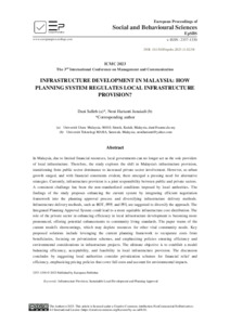 Salleh, Dani and Junaiadi, Noni Harianti (2023) Infrastructure Development in Malaysia: How Planning System Regulates Local Infrastructure Provision? In: 3rd International Conference on Management and Communication, 1-2 March 2023, Kuala Terengganu, Malaysia.