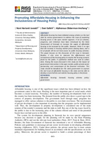 Junaidi, Noni Harianti and Salleh, Dani and Anchang, Alphonsus Obberman (2023) Promoting Affordable Housing in Enhancing the Inclusiveness of Housing Policy. Randwick International of Social Sciences (RISS) Journal, 4 (4). pp. 845-850. ISSN 2722-5674