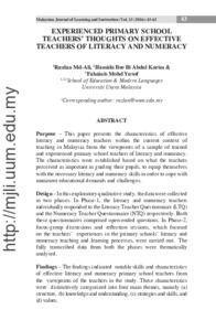 Md Ali, Ruzlan and Abdul Karim, Hamida Bee Bi and Mohd Yusof, Fahainis (2016) Experienced Primary School Teachers' Thoughts on Effective Teachers of Literacy and Numeracy. Malaysian Journal of Learning and Instruction (MJLI), 13 (1). pp. 43-62. ISSN 1675-8110