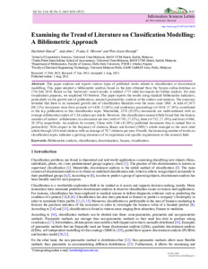 Hamid, Hashibah and Ahmi, Aidi and Okwonu, Friday Zinzendoff and Mustafa, Wan Azani (2023) Examining the Trend of Literature on Classification Modelling: A Bibliometric Approach. Information Sciences Letters: An International Journal, 12 (8). pp. 2665-2684. ISSN 2090-9551