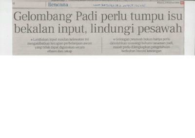 | Uncontrolled Keywords: | Gelombang Padi Perlu Tumpu Isu Bekalan Input, Lindungi Pesawah |