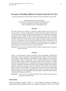 Hamid, Hashibah and Mahat, Nor Idayu (2012) Strategies of Handling Different Variables Reduction for LDA. Jurnal Sains dan Matematik, 4 (2). pp. 37-48. ISSN 1985-7918