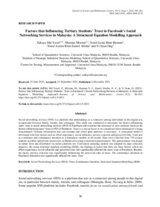Md Yusof, Zahayu and Misiran, Masnita and Hasnun, Nurul Izzati and Zainol Abidin, Nurul Aziera and Yi Sean, Ong (2021) Factors that Influencing Tertiary Students’ Trust in Facebook’s Social Networking Services in Malaysia: A Structural Equation Modelling Approach. Journal of Science and Mathematics Letters, 9 (1). pp. 86-102. ISSN 2462-2052