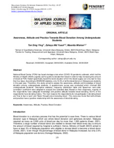 Tan Sing, Ying and Md Yusof, Zahayu and Misiran, Masnita (2024) Awareness, Attitude and Practice Towards Blood Donation Among Undergraduate Students. Malaysian Journal of Applied Sciences, 9 (1). pp. 19-27. ISSN 0127-9246