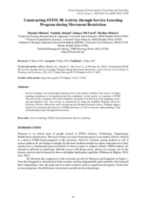 Misiran, Masnita and Ahmad, Nazihah and Md Yusof, Zahayu and Misiran, Maslina (2022) Constructing STEM 3R Activity through Service-Learning Program during Movement Restriction. Asian Journal of Assessment in Teaching and Learning, 12 (1). pp. 63-75. ISSN 2821-2916