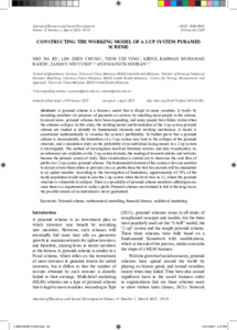 Neo, Jia Jie and Lim, Zhen Chung and Teoh, Tze Ying and Muhamad Rasidi, Abdul Rahman and Md Yusof, Zahayu and Misiran, Masnita (2023) Constructing The Working Model of A 2-Up System Pyramid Scheme. Journal of Business and Social Development, 11 (1). pp. 29-38. ISSN 2600-9668