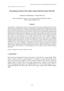 Gobalkrishnan, Gangaieisvari and Md Yusof, Zahayu (2023) Forecasting on House Price Index using Artificial Neural Network. Journal of Contemporary Issues and Thought, 13 (2). pp. 44-60. ISSN 2232-0032