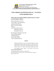Md Yusof, Zahayu and Abdullah, Suhaida and Syed Yahaya, Sharipah Soaad and Othman, Abdul Rahman (2012) Type I Error and Power Rates of Ft Statistic with Trimmed Mean. Far East Journal of Mathematical Sciences (FJMS), 69 (1). pp. 37-50. ISSN 0972-0871