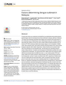 Ahmad, Rohani and Ismail, Suzilah and Wan Najdah, Wan Mohamad Ali and Topek, Omar and Mustafakamal, Ibrahim and Han Lim, Lee (2018) Factors determining dengue outbreak in Malaysia. PLoS ONE, 13 (2). pp. 1-13. ISSN 1932-6203