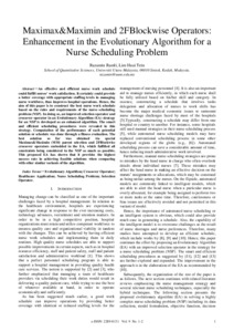 | Uncontrolled Keywords: | Evolutionary Algorithm; Crossover Operator; Healthcare Application; Nurse Scheduling Problem; Selection Operator |