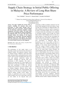 Abbas Almtoor, Yasir Abdullah and Ahmad Zaluki, Nurwati Ashikkin and Abd Rahim, Nazahah (2019) Supply Chain Strategy in Initial Public Offering in Malaysia: A Review of Long-run Share Price Performance. International Journal of Supply Chain Management (IJSCM), 8 (4). pp. 642-652. ISSN 2050-7399