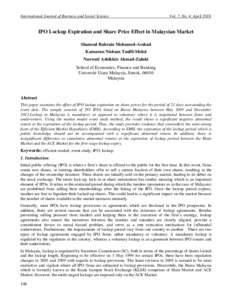 Mohamed Arshad, Shamsul Bahrain and Taufil Mohd, Kamarun Nisham and Ahmad Zaluki, Nurwati Ashikkin (2016) IPO Lockup Expiration and Share Price Effect in Malaysian Market. International Journal of Business and Social Science (IJBSS), 7 (4). pp. 108-113. ISSN 2219-1933