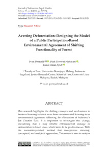 Permadi, Iwan and Maharani, Diah Pawestri and Ayub, Zainal Amin (2023) Averting Deforestation: Designing the Model of a Public Participation-Based Environmental Agreement of Shifting Functionality of Forest. Journal of Indonesian Legal Studies, 8 (2). pp. 707-752. ISSN 2548-1584