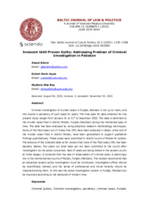 Ghani, Abdul and Ayub, Zainal Amin and Mat Rus, Mukhriz (2022) Innocent Until Proven Guilty: Addressing Problem of Criminal Investigation in Pakistan. Baltic Journal of Law & Politics, 15 (3). pp. 1193-1208. ISSN 2029-0454