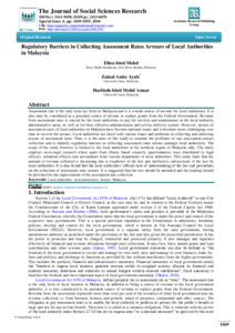 Assessment rate is the only local tax form in Malaysia and it is a main source of income for local authorities. It is also may be considered as a potential source of income to replace grants from the Federal Government. Revenue from assessment rates is crucial for the local authorities to pay for services and maintenance in the local authority administrative areas, as well as for their effective administration and service delivery system. However, arrears of assessment rates of local authorities in Malaysia have become national issues and it becomes more challenging over time to recover the arrears. Local authorities are faced with various issues and problems in collecting and enforcing arrears of assessment rates. Thus, it is the aims of this study to examine the problems of rate assessment arrears collection and to identify regulatory barriers in collecting assessment rates arrears amongst local authorities. The scope of the study however is limited to the local authorities in the northern region of Malaysia only. The study employs socio-legal research where apart from library based research, questionnaires were distributed to legal officers, valuation officers and accountants from various department of local authorities. This study finds that the amount of revenue collected is decreasing due to loopholes of the law and ineffective enforcement of the law by local authorities. It is also found that the local authorities? officers lack of understanding of the law and procedures on the collection of assessment rates arrears. It is suggested that the law should be amended and the training should be provided for the improvement of the assessment rate collection