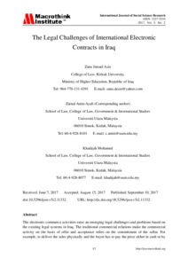 Aziz, Zana Ismael and Ayub, Zainal Amin and Mohamed, Khadijah (2017) The Legal Challenges of International Electronic Contracts in Iraq. The Journal of Social Sciences Research, 5 (2). pp. 57-72. ISSN 2413- 6670