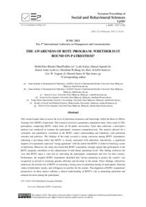 Shariffuddin, Mohd Dino Khairri and Ahmad Apandi, Laila Suriya and Ayub, Zainal Amin and Wallang, Muslimin and Saad, Ram Al Jaffri and Sagena, Uni W and Darus @ Mat Junus, Mariah (2023) The Awareness of Rotu Program: Whether is it Bound on Patriotism? In: Strengthening Governance, Enhancing Integrity and Navigating Communication for Future Resilient Growth, 1-2 March, 2023, Kuala Terengganu, Malaysia.