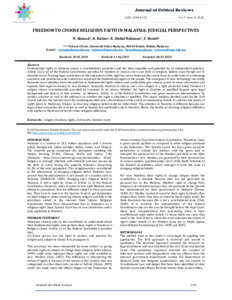 Ahmad, Rusniah and Halim, Rohizan and Abdul Rahman, Rohana and Romli, Fariza (2020) Freedom to Choose Religious Faith in Malaysia: Judicial Perspectives. Journal of Critical Reviews, 7 (8). pp. 1725-1728. ISSN 2394-5125