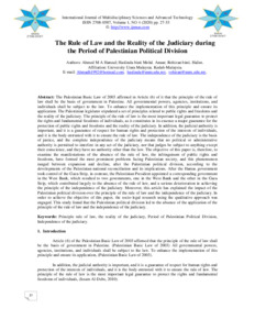 Hamad, Ahmed M A and Mohd Anuar, Haslinda and Halim, Rohizan (2020) The Rule of Law and the Reality of the Judiciary during the Period of Palestinian Political Division. International Journal of Multidisciplinary Sciences and Advanced Technology, 1 (4). pp. 27-33. ISSN 2708-0587