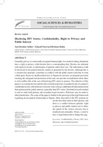 Salihu, Sani Ibrahim and Yusof, Yuhanif and Halim, Rohizan (2018) Disclosing HIV Status:Vis-avis Confidentiality, Right to Privacy and Public Interest. Pertanika Journal of Social Sciences & Humanities, 26 (2). pp. 601-614. ISSN 0128-7702