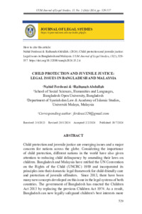 Ferdousi, Nahid and Abdullah, Raihanah (2024) Child Protection and Juvenile Justice: Legal Issues in Bangladesh and Malaysia. UUM Journal of Legal Studies (UUMJLS), 15 (2). pp. 529-557. ISSN 2229-984X
