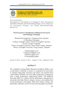 Kaewninprasert, Kittisak and Chai-Arayalert, Supaporn and Yamaqupta, Narueban (2024) The Perspective Classification of Balanced Scorecard with Ontology Technique. Journal of ICT, 23 (3). pp. 465-494. ISSN 1675-414X