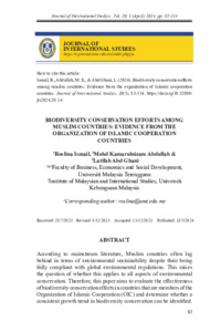 Ismail, Roslina and Abdullah, Kamarulnizam and Abd Ghani, Latifah (2024) Biodiversity Conservation Efforts Among Muslim Countries: Evidence from the Organization of Islamic Cooperation Countries. Journal of International Studies (JIS), 20 (1). pp. 83-114. ISSN 1823-691X