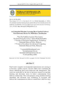 Wan Azman,, Wan Nur Fadhlina Syamimi and Ku Azir, Ku Nurul Fazira and Mohd Khairuddin, Adam (2024) An Embedded Machine Learning-Based Spoiled Leftover Food Detection Device for Multiclass Classification. Journal of ICT, 23 (2). pp. 253-292. ISSN 1675-414X