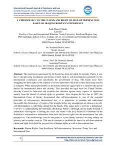 Qader, Sanh Shareef and Ahmad, Rusniah and Mohd Anuar, Haslinda (2019) A Chronology to the Claims and Right on Self Determination Based on Iraqi Kurdistan's Experience. International Research Journal of Commerce and Law, 6 (1). pp. 1-8. ISSN 2349-705X