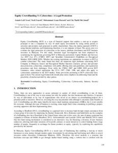 Yeon, Asmah Laili and Yaacob, Nurli and Hussain, Mohammad Azam and Md Ismail, Che Thalbi (2022) Equity Crowdfunding Vs Cybercrime: A Legal Protection. BiLD Law Journal, 7 (1). pp. 139-150. ISSN 2518-6523