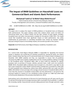 Isa, Mohamad Yazid and Mohd Hussin, Mohd Yahya (2016) The Impact of BNM Guidelines on Household Loans on Commercial Bank and Islamic Bank Performances. International Journal of Academic Research in Business and Social Sciences, 6 (11). pp. 377-387. ISSN 2222-6990