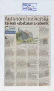 Mohd Sani, Mohd Azizuddin (2011) Autonomi Universiti Ke Arah Kebebasan Akademik. Autonomi Universiti Ke Arah Kebebasan Akademik. p. 2.