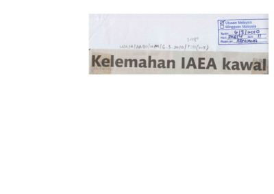 Keling, Mohamad Faisol (2010) Kelemahan IAEA Kawal Nuklear Sedunia. Kelemahan IAEA Kawal Nuklear Sedunia. p. 11.