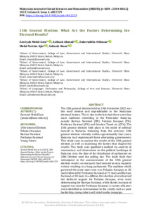 Mohd. Zain, Zawiyah and Ahmad, Zalinah and Othman, Zaheruddin and Ajis, Mohd Na'eim and Omar, Salmah (2023) 15th General Election: What are the Factors Determining the Electoral Results? Malaysian Journal of Social Sciences and Humanities (MJSSH), 8 (4). pp. 1-9. ISSN 2504-8562