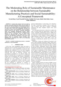 Hami, Norsiah and Ibrahim, Yousif Munadhil and Mat Yamin, Fadhilah and Mohd Shafie, Shafini and Abdulameer, Susan Sabah (2019) The Moderating Role of Sustainable Maintenance on The Relationship Between Sustainable Manufacturing Practices and Social Sustainability: A Conceptual Framework. International Journal of Engineering and Advanced Technology (IJEAT), 8 (5C). pp. 222-228. ISSN ISSN: 2249 – 8958