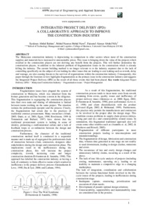 Abdul Rahim, Syukran and Mohd Nawi, Mohd Nasrun and Abdul Nifa, Faizatul Akmar (2016) Integrated Project Delivery (IPD): A Collaborative Approach to Improve the Construction Industry. ARPN Journal of Engineering and Applied Sciences, 10 (10). pp. 1-5. ISSN 1819-6608
