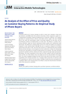 Hamizan, Maisarah and Abu, Noor Hidayah and Mansor, Mohd Fitri and Zaidi, Mohd Azian (2023) An Analysis of the Effect of Price and Quality on Customer Buying Patterns: An Empirical Study of iPhone Buyers. International Journal of Interactive Mobile Technologies (iJIM), 17 (18). pp. 118-128. ISSN 1865-7923