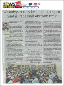 Sairan, Mohd Ammyrul Ashraf (2024) Wasatiyyah Asas Kestabilan Negara, Hindari Fahaman Ekstrem Umat. (2 October 2024). in Berita Harian, Kuala Lumpur, p. p. 20.