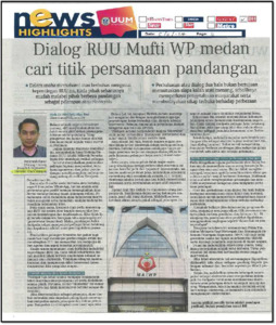 | Uncontrolled Keywords: | Dialog RUU Mufti WP Medan Cari Titik Persamaan Pandangan penulisan Dr Mukhriz Mat Rus |