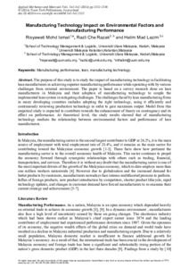 Mohd Ismail, Risyawati and Che Razak, Razli and Mad Lazim, Halim (2014) Manufacturing Technology Impact on Environmental Factors and Manufacturing Performance. Applied Mechanics and Materials, 541-42. pp. 1532-1536. ISSN 1662-7482