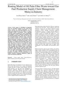 Zakaria, Izatul Husna and Ibrahim, Jafni Azhan and Othman, Abdul Aziz (2017) Routing Model of Oil Palm Fibre Waste toward Gas Fuel Production Supply Chain Management: Malaysia Industry. International Journal of Supply Chain Management (IJSCM), 6 (2). pp. 75-80. ISSN 2051-3771