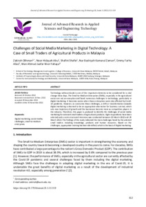 Othman, Zakirah and Abu, Noor Hidayah and Mohd Shafie, Shafini and Kamarul Zaman, Nur Badriyah and Alias, Emmy Farha and Wan Yahaya, Wan Ahmad Jaafar (2022) Challenges of Social Media Marketing in Digital Technology: A Case of Small Traders of Agricultural Products in Malaysia. Journal of Advanced Research in Applied Sciences and Engineering Technology, 28 (3). pp. 312-319. ISSN 2462-1943