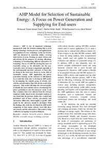 Ahmad Zaidi, Mohamad Faizal and Mohd Shafie, Shafini and Abdul Rahim, Mohd Kamarul Irwan (2020) AHP Model for Selection of Sustainable Energy: A Focus on Power Generation and Supplying for End-users. International Journal of Supply Chain Management (IJSCM), 9 (2). pp. 227-233. ISSN 2051-3771