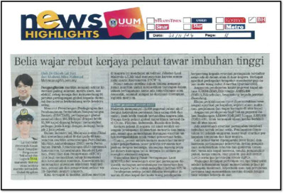 Chuah, Lai Fatt and Mahmud, Shahrul Miza (2024) Belia Wajar Rebut Kerjaya Pelaut Tawar Imbuhan Tinggi. (22 November 2024). in Berita Harian, Kuala Lumpur, p. p. 11.