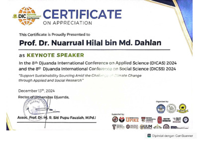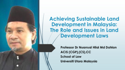 | Additional Information: | UUM/AA82/AM/13.12.2024/N.P(1-2) Keynote speech titled "Achieving Sustainable Land Development in Malaysia: The Role and Issues in Land Development Laws". The 8th Djuanda International Conference on Applied Science (DICAS) 2024 and the 8th Djuanda International Conference on Social Science (DICSS) 2024. Support Sustainability Sourcing Amid the Challenge of Climate Change through Applied and Social Research. Universitas Djuanda Bogor. 13th December 2024. |