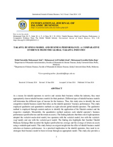 As a means for takaful operators to survive and sustain their business within the industry, they must appropriately choose takaful business models for their products. Different types of takaful business models will determine the different types of income for the business. Thus, this study aims to identify the most competitive takaful business model that relies on the takaful operators’ business performance. This study employed qualitative and quantitative methods on eight selected global takaful operators. The qualitative method is employed through content analysis to identify the application of the Shariah contract and the respective standards. Meanwhile, the quantitative method analyzes each takaful operator’s business performance (profit-after-tax and the return on assets). The finding indicates that three out of eight operators adopted the wakalah-mudarabah model, two operators with the wakalah model, two with the wakalah�waqf model, and one with the wakalah-qard model. The finding also highlights that Syarikat Takaful Malaysia Keluarga Bhd recorded the highest profit-after-tax average and the average of return on assets using a wakalah-qard model. This study betrays an exigent insight into the effect of takaful business model selection on business performance. As a practical implication to the takaful operators, they need to re�strategize their business model to boost revenue through an appropriate model. This study also provides a breakthrough to the body of knowledge. This paper bids its originality by narrowing down the segment of the takaful industry and focusing only on the family takaful segment